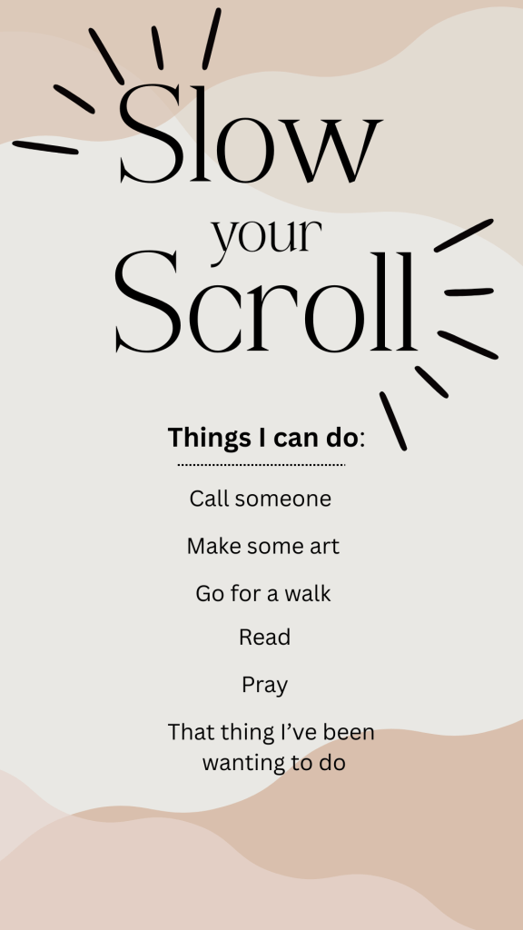 To help you slow your scroll, I’ve created a free phone wallpaper as a reminder to be intentional about how you spend your time online. Feel free to download and share it.